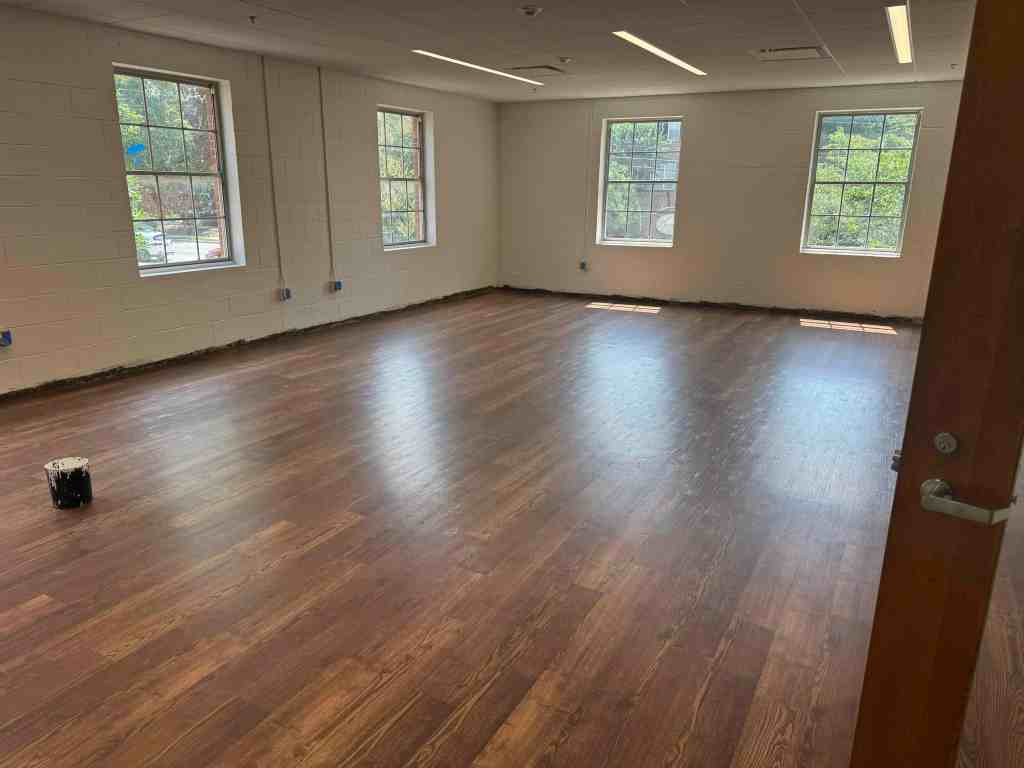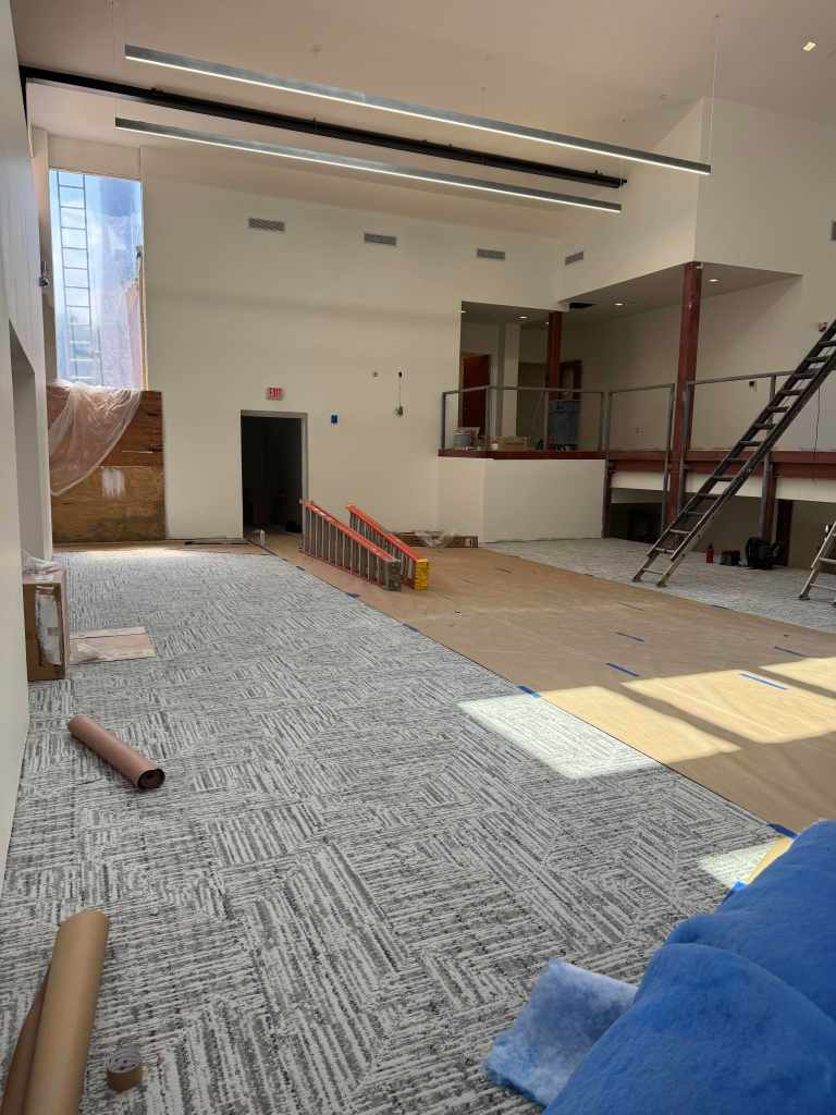 I think there is a light at the end of the tunnel. All of the flooring was installed last week (some pictures are included below) and we have the “shop drawings” back on the atrium curtain wall (the floor to ceiling windows). We’re still navigating the water main/fire suppression system issue, but we’re getting there. So, I thought I would use this space in the coming weeks to reflect upon what we have learned through the process of property sale and renovation with the hope that these are lessons we can take into our future together as a fellowship at this crossroads both of space and time.